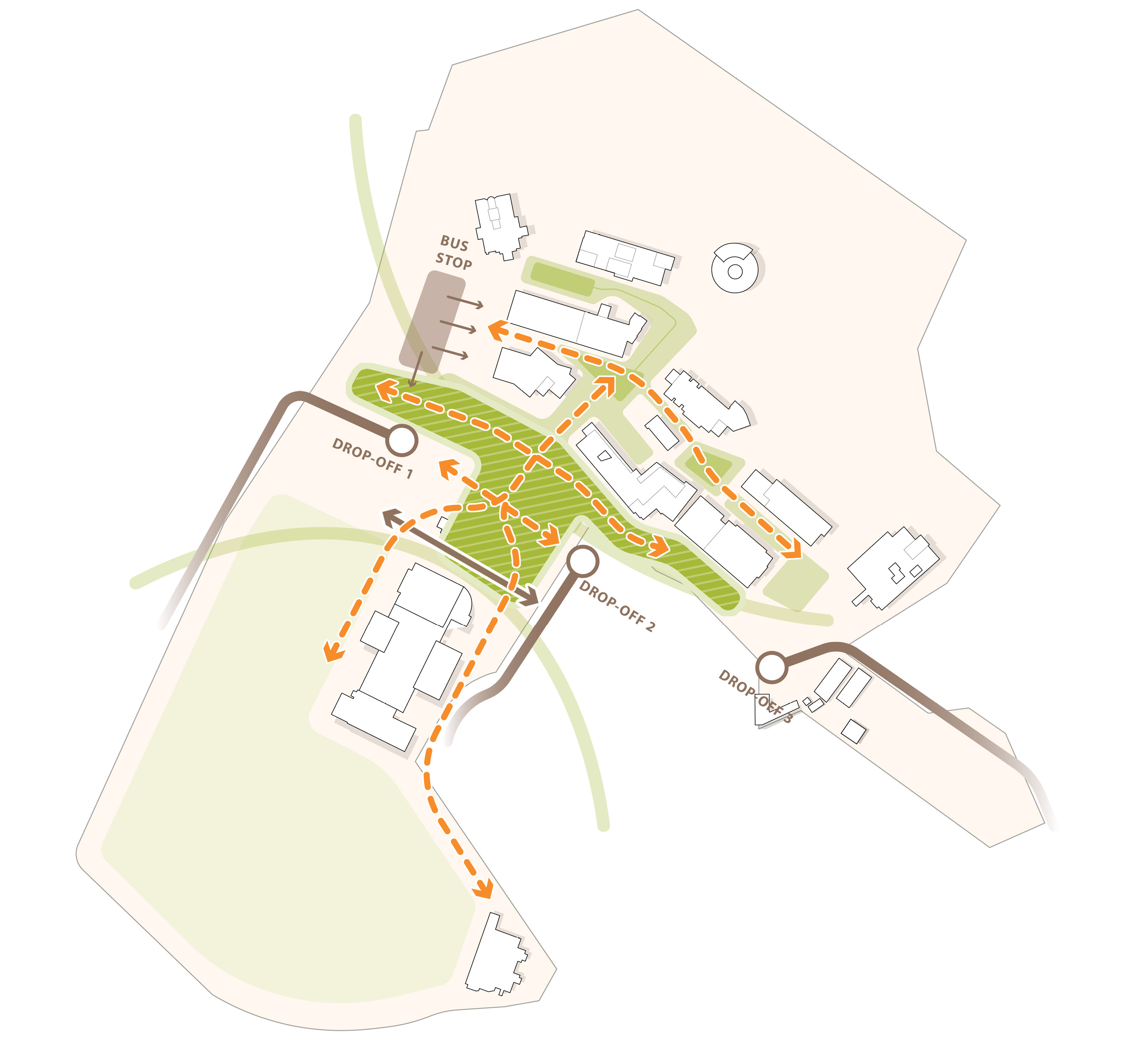 The Plan’s “Big Ideas” establish a vision for a vibrant, connective campus that enhances the experience for students, faculty, staff, and the greater community. One of the “Big Ideas”, Improving the Heart of Campus, will create a vibrant center of campus with open space and pedestrian paths to encourage gathering, connectivity and accessibility. The actionable steps as part of this plan include developing and defining exterior places that celebrate the site, offering respite, meditation, and collaboration.