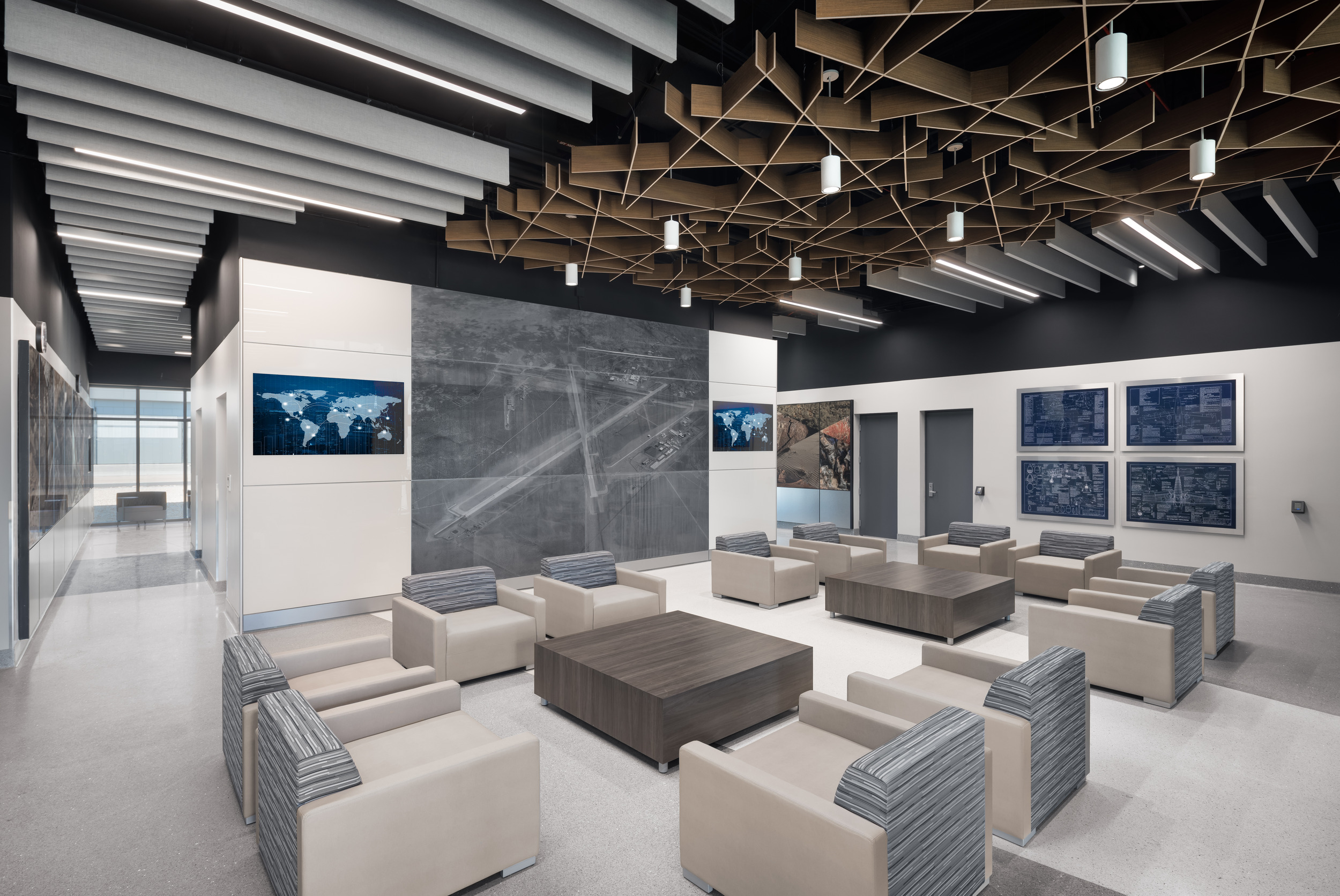 The Integration Laboratory ($136.1M) is a 75,800 SF RDT&E Laboratory and Airport building expanding the Naval Air Weapons Center Weapons Division’s mission in NAWS China Lake. The Main building entry opens to a high-volume, naturally illuminated lobby with digital art walls honoring the local commands. Titled the “Jewel of the South Airfield” by Navy stakeholders, the lobby serves as a circulation node to access the secure facility administration and laboratory wings.