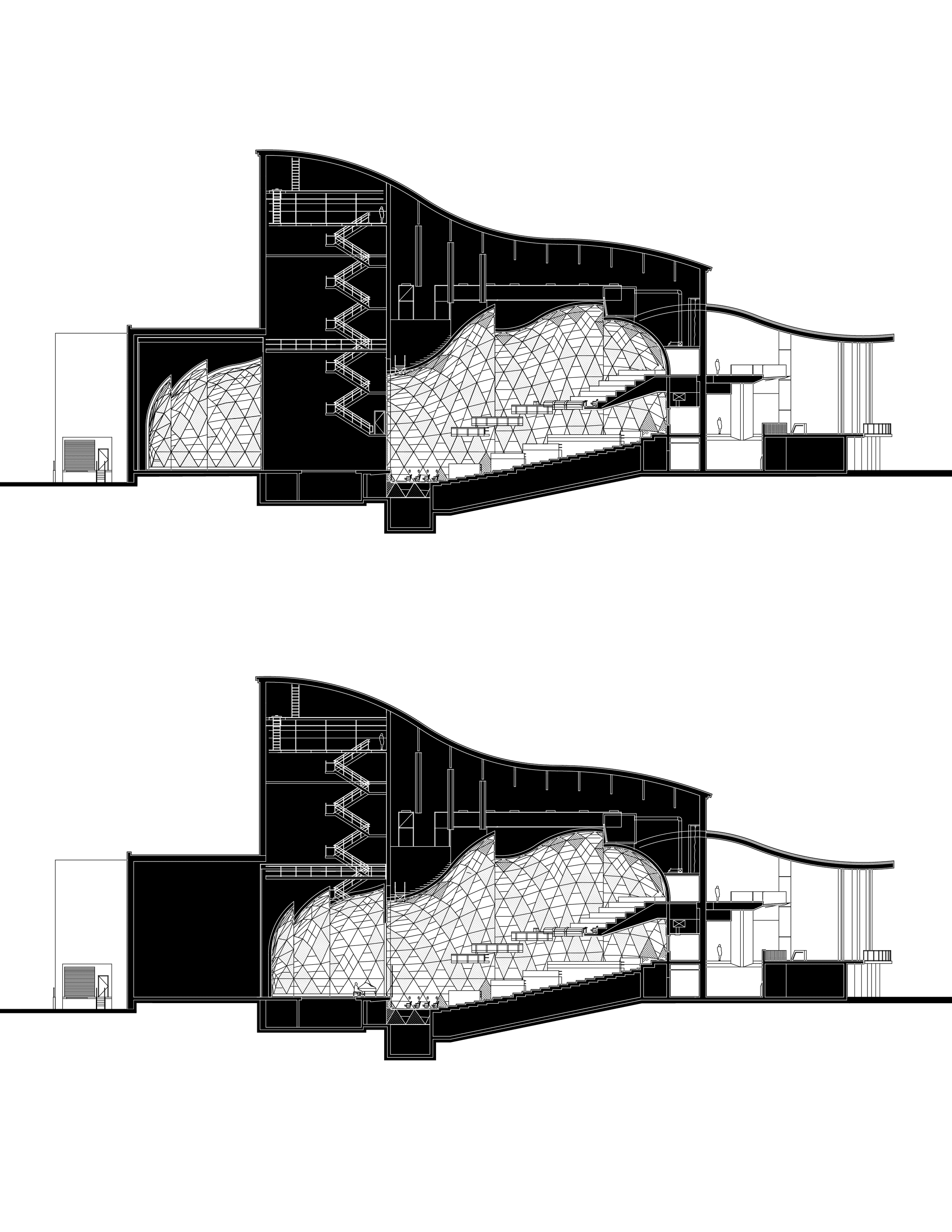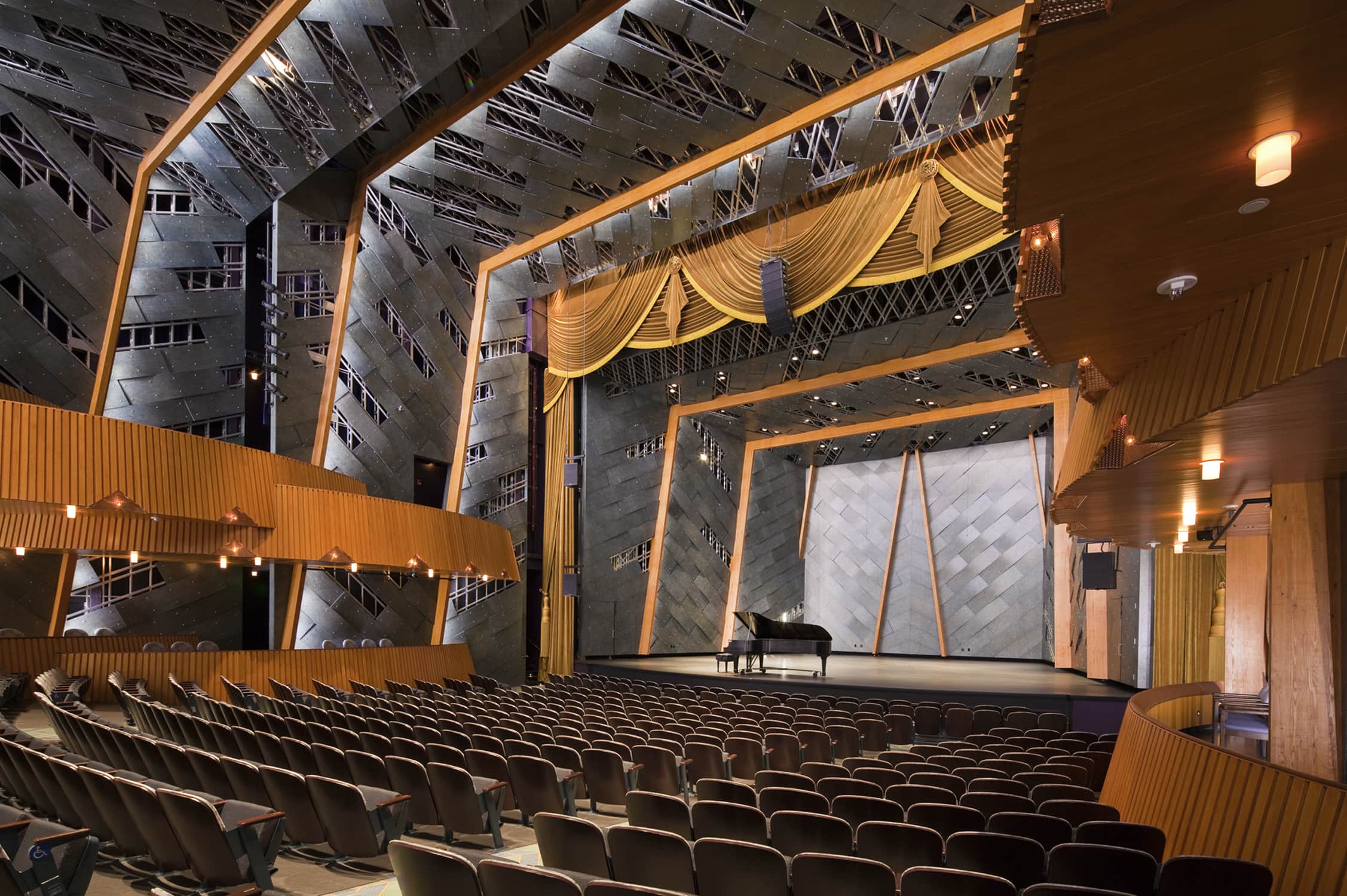 Beginning in 2001 with the conceptual study for a 1,500-seat auditorium in Plano, Texas, Steinberg Hart proposed creating a single-room music auditorium that could be easily reshaped into a two-room proscenium venue for theater.